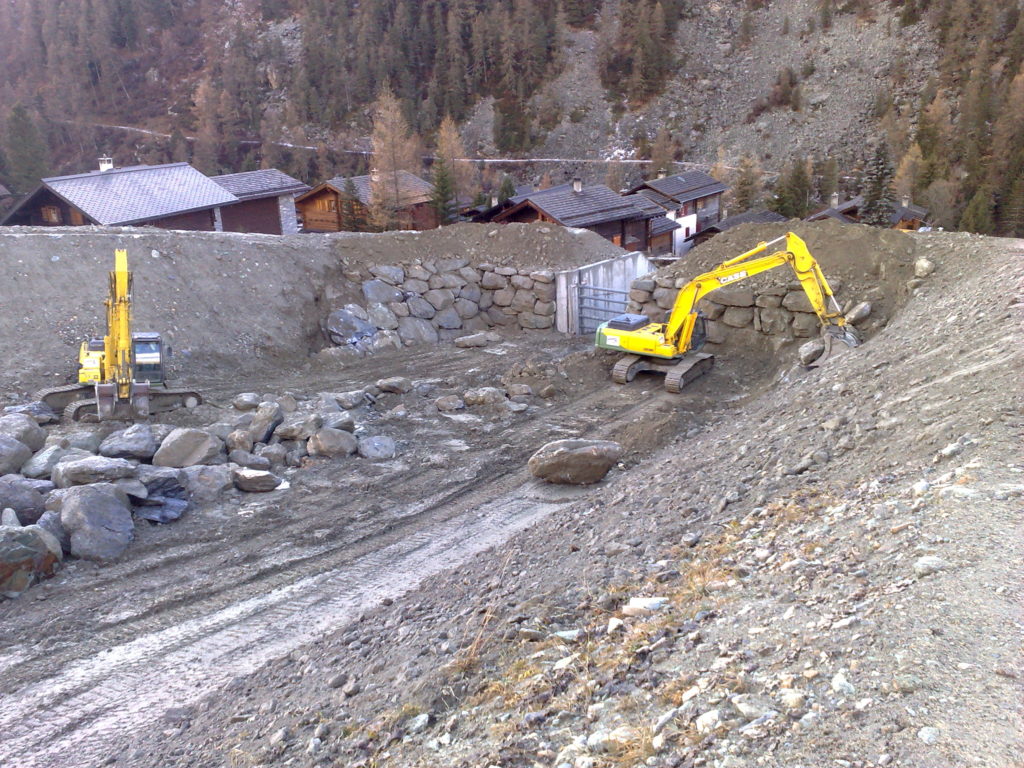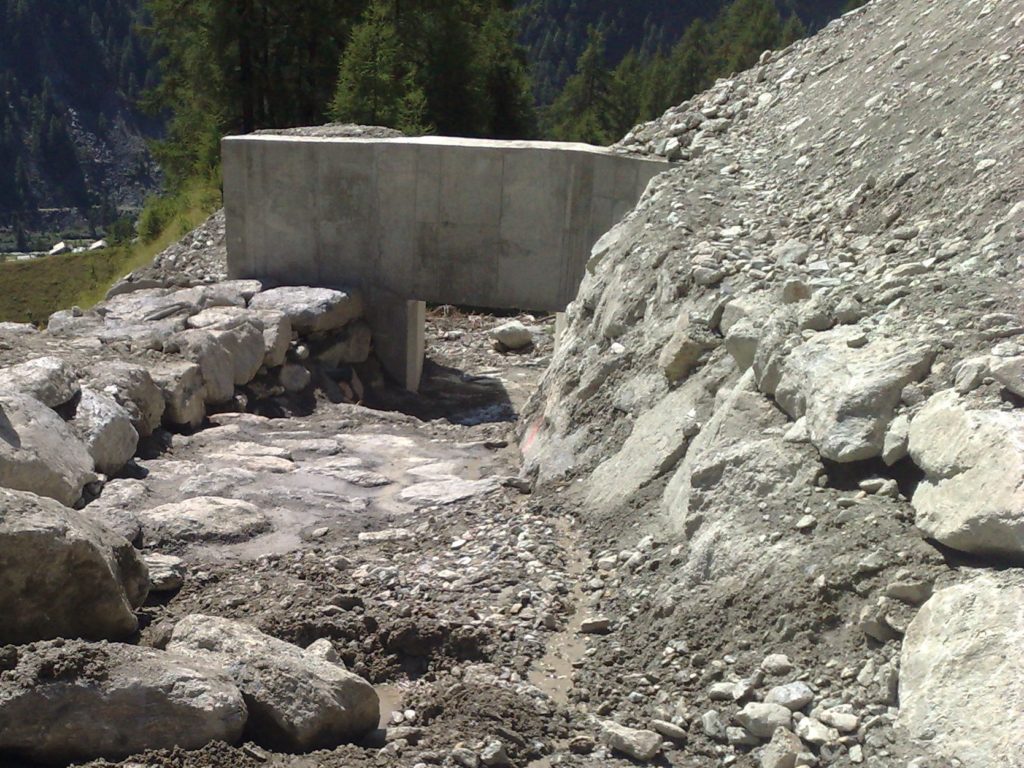 - En collaboration avec des hydrauliciens, conception et dimensionnement d’ouvrages de protection contre les crues et laves torrentielles (digues de guidage, dépotoirs, murs, seuils, etc.)