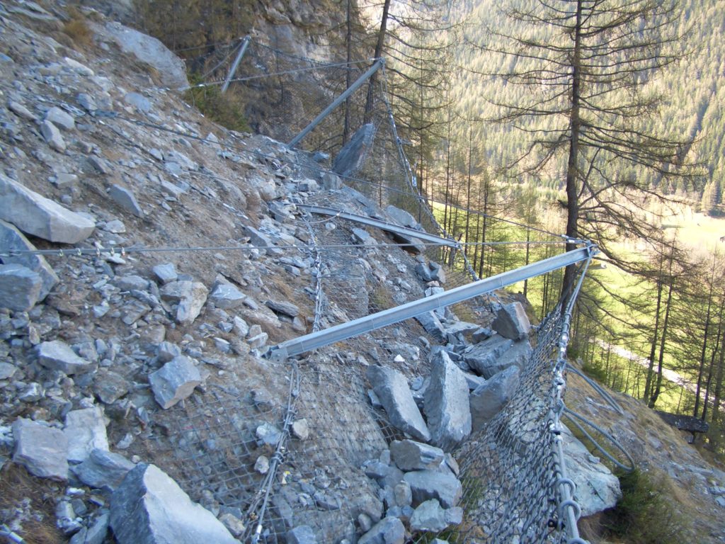 - Conception et dimensionnement d’ouvrages de protection contre les chutes de pierres ou les éboulements (digues parepierres, filets parepierres, minage et travaux en falaise, etc.)